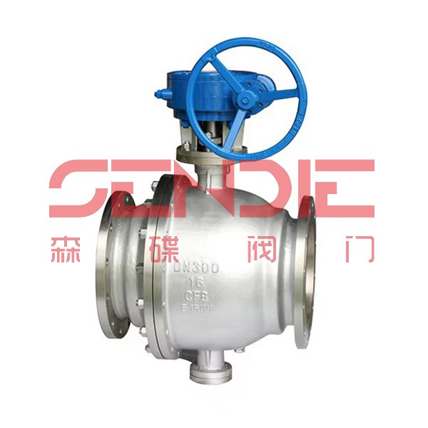 蜗轮固定式球阀有二段式和三段式两种阀体结构,中法兰用螺栓连接,密封采用增强聚四氟乙烯镶入不锈钢圈内,钢圈后部没有弹簧保证阀座紧贴球体,保持密封。上下阀杆均没有PTFE轴承,减少磨擦,操作省力,小轴底部没有调整片,保证球与密封圈的接处位置。全通径:阀门流量孔径与管线内径一致,以便管线清扫。